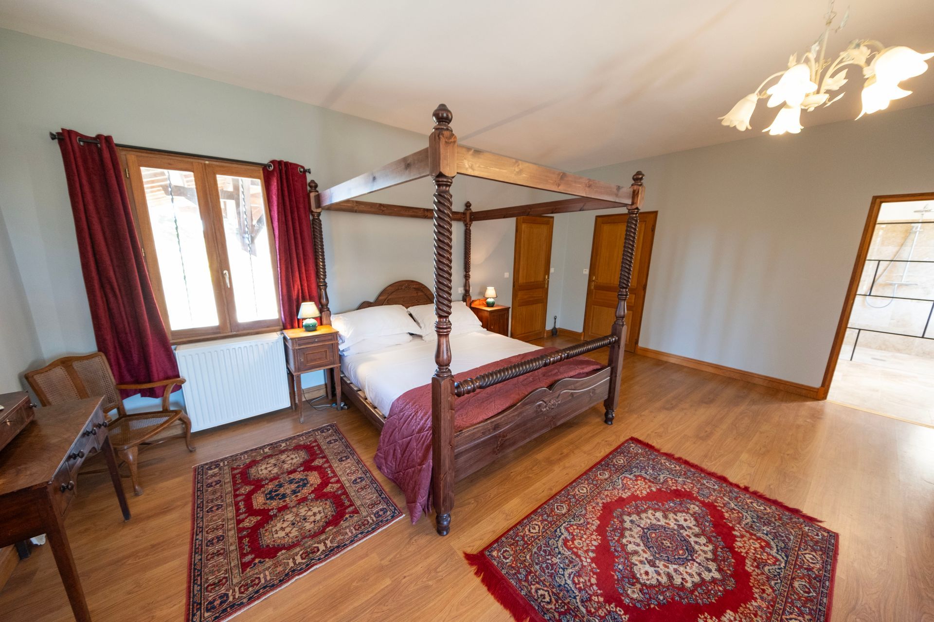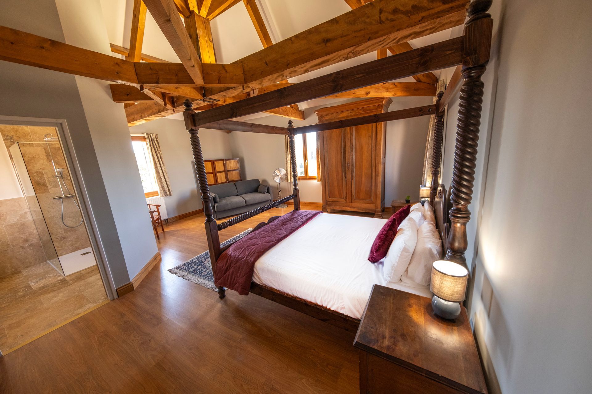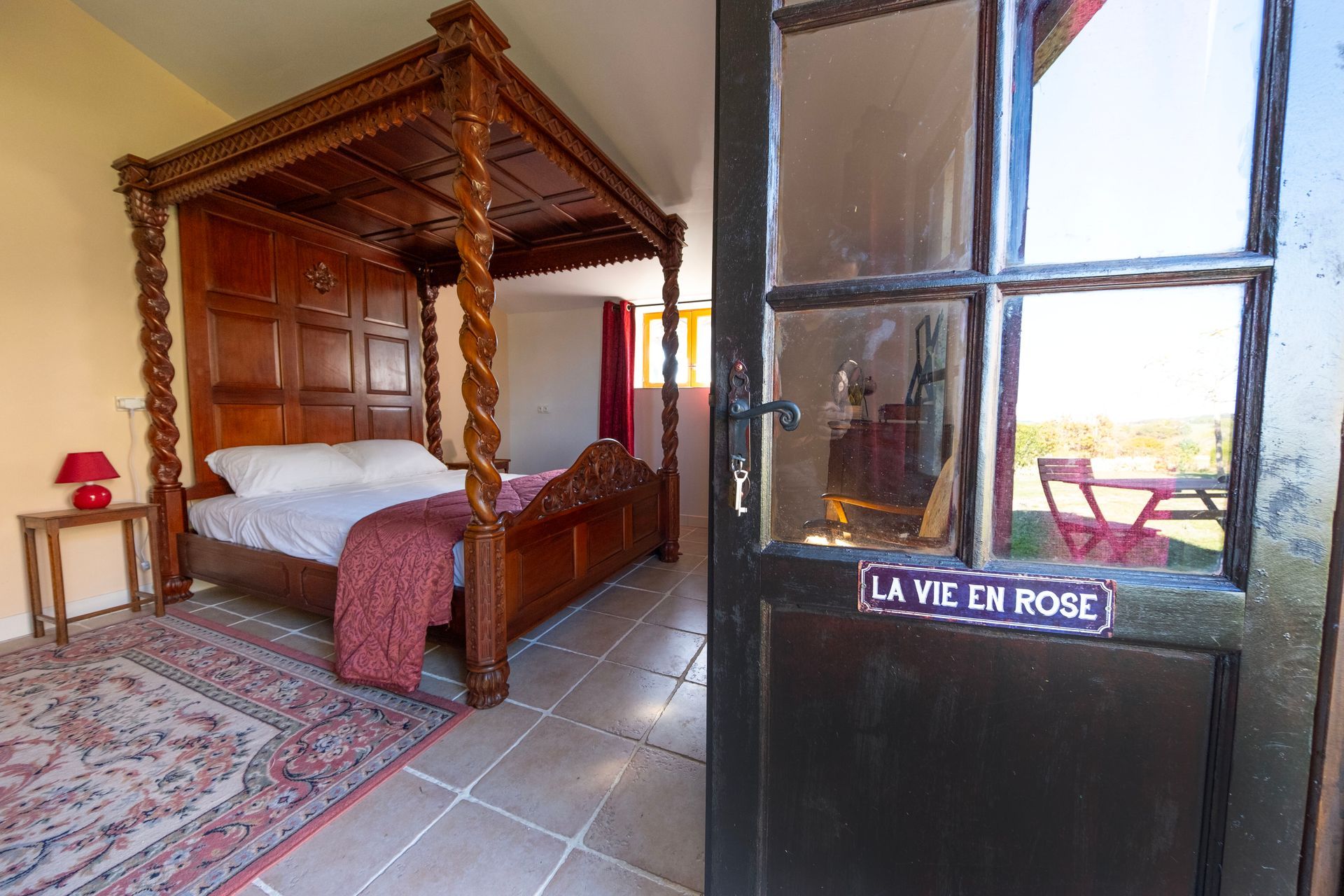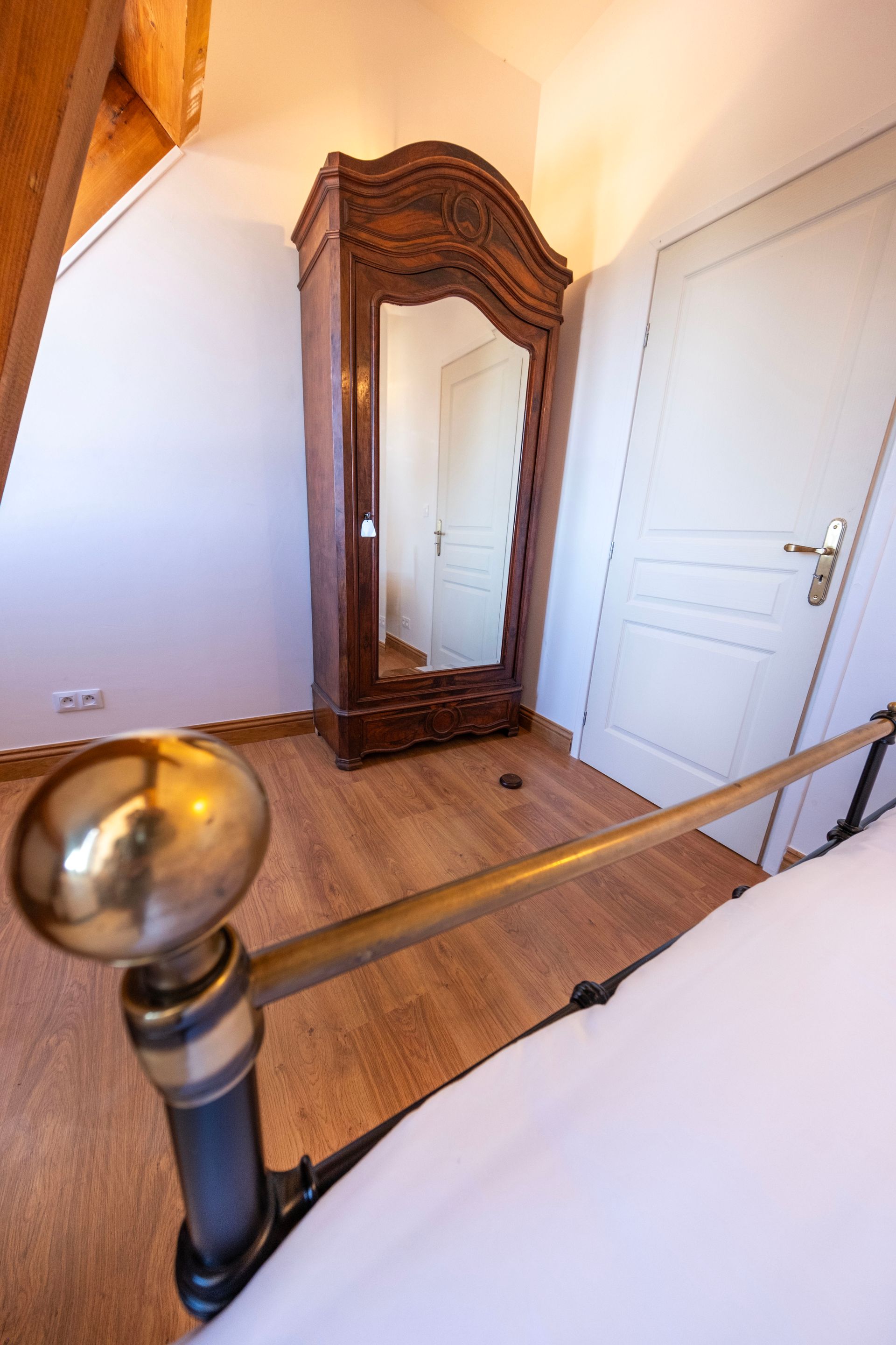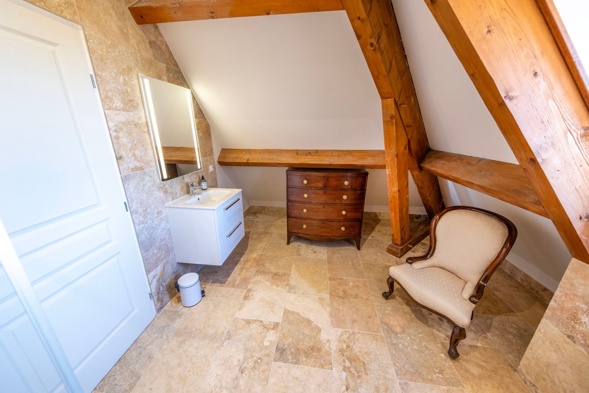 Slaapzaal op de benedenverdieping met stapelbedden voor maximaal zes kinderen en een aparte tweepersoonskamer met een tweepersoonsbed. De slaapzaal beschikt over een tv en een bank.