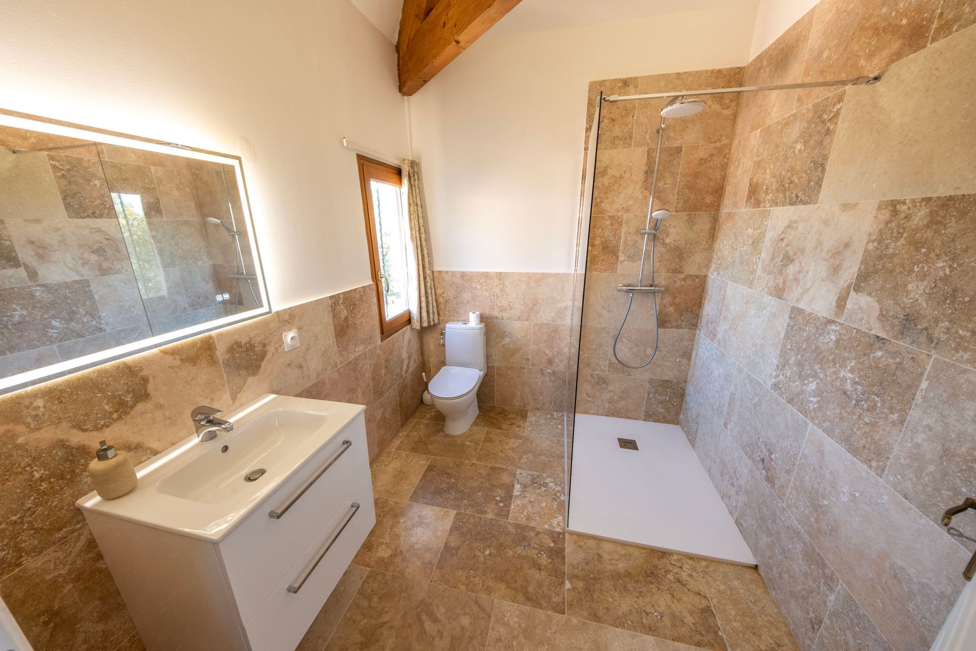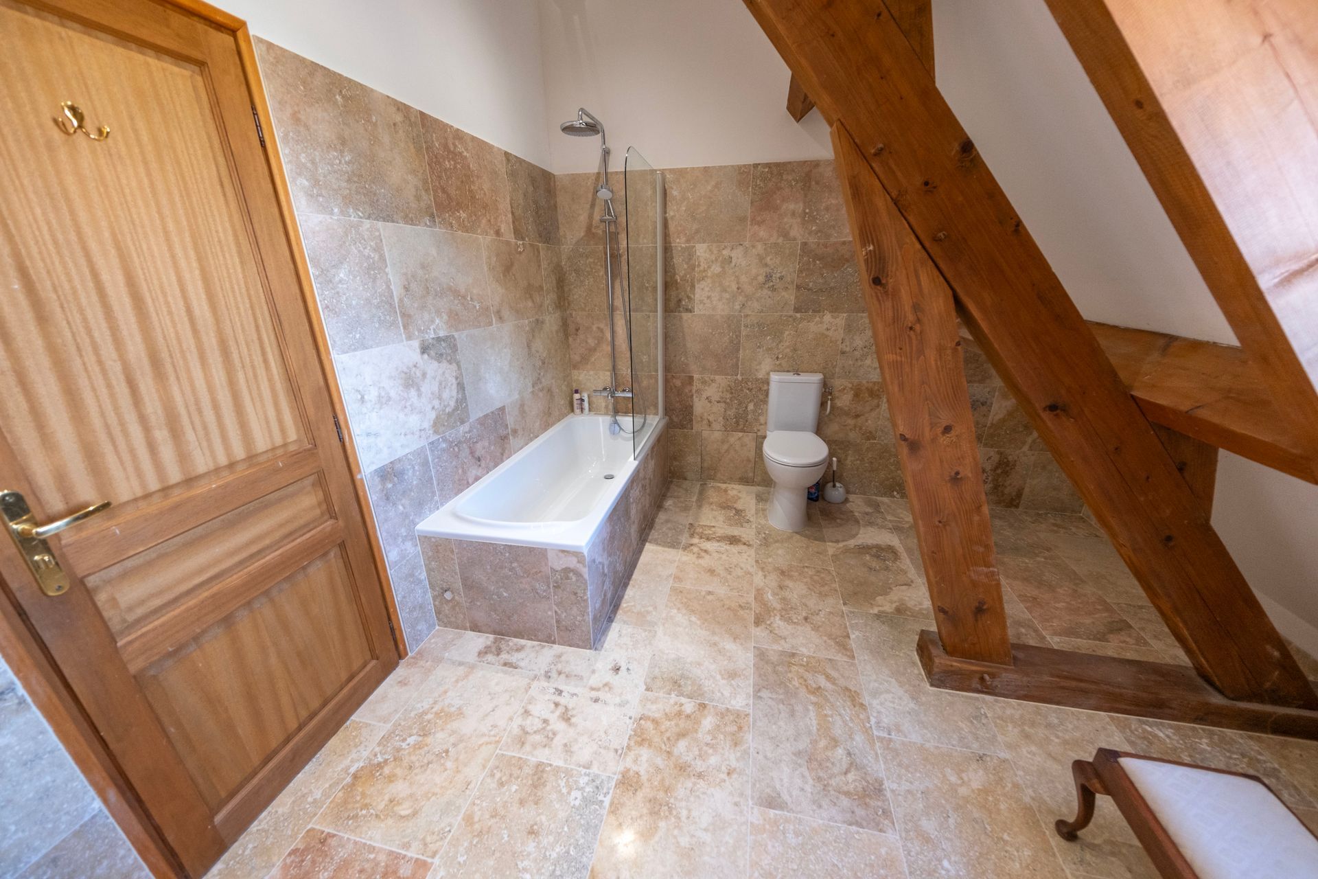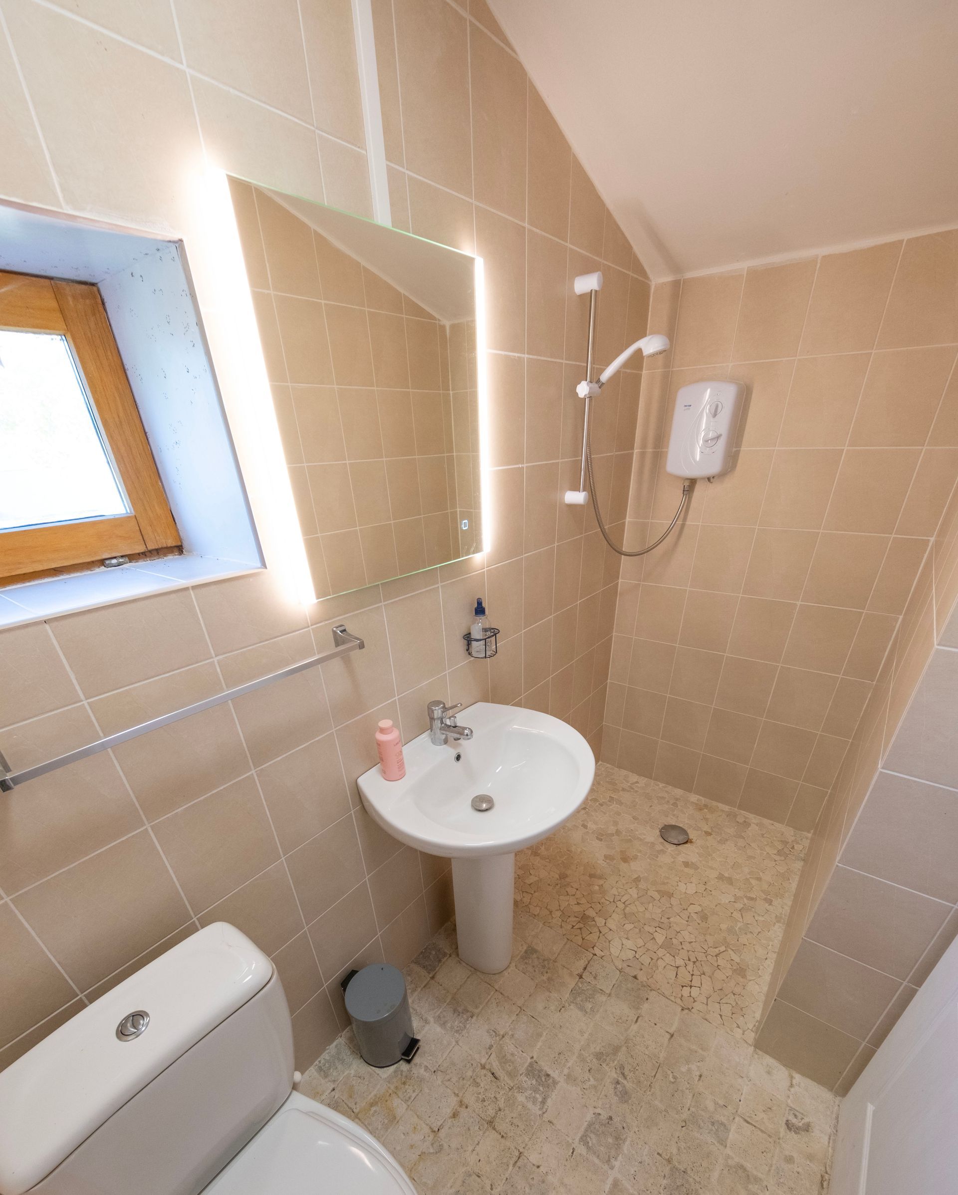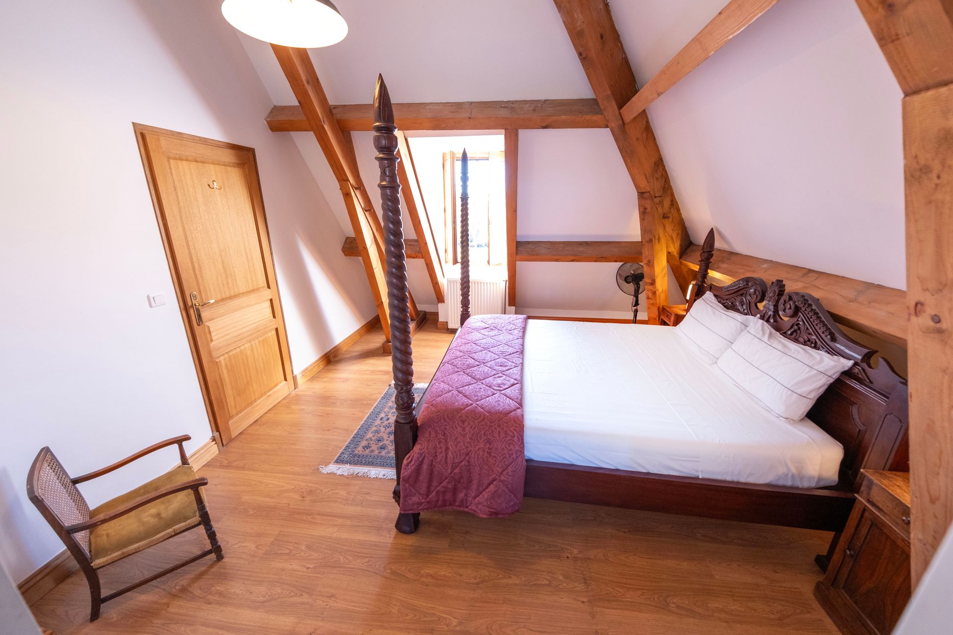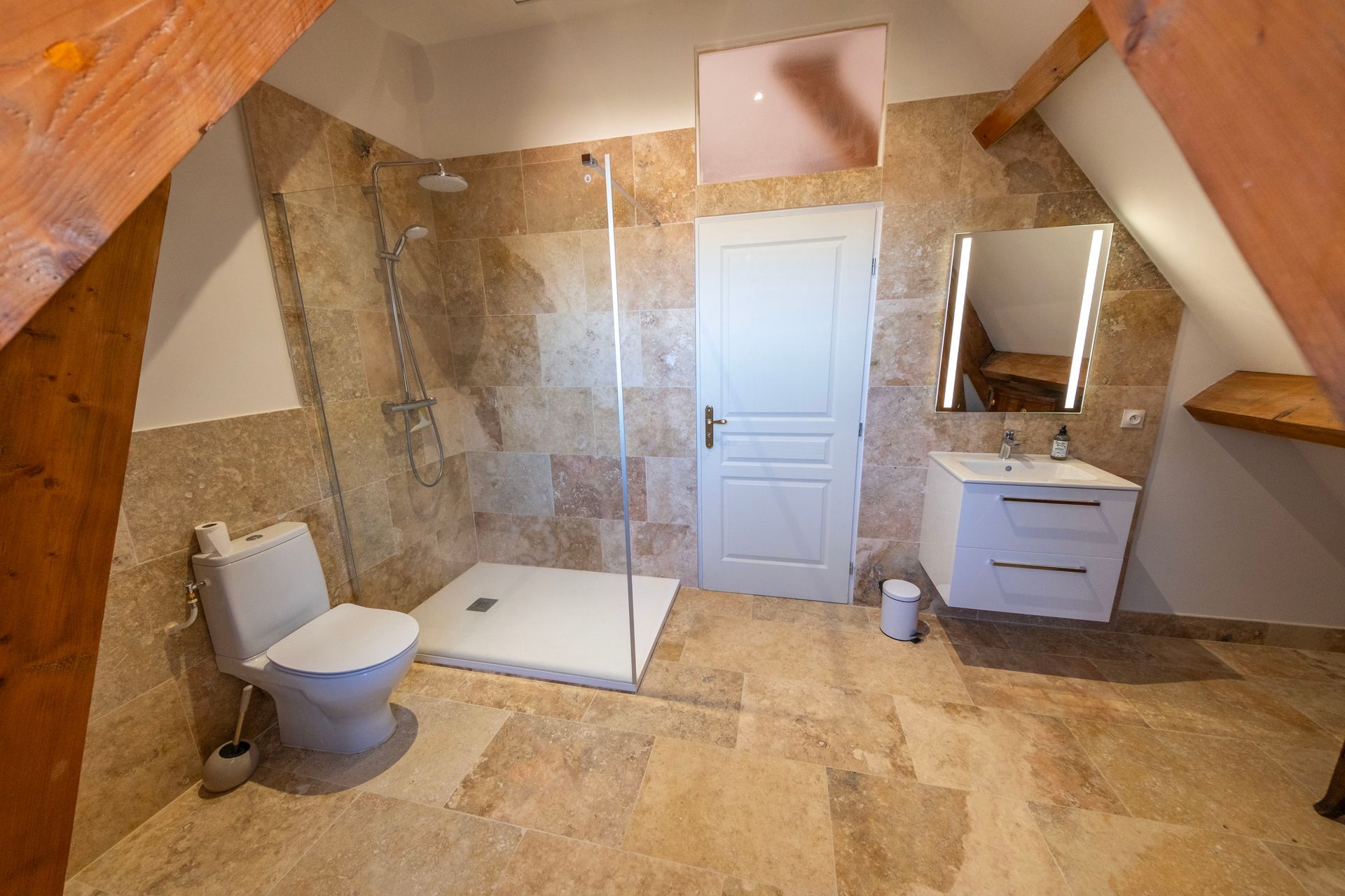 Slaapzaal op de benedenverdieping met stapelbedden voor maximaal zes kinderen en een aparte tweepersoonskamer met een tweepersoonsbed. De slaapzaal beschikt over een tv en een bank.
